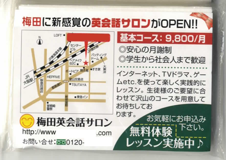 英会話サロン様からポケットティッシュ製作をご依頼いただきました。