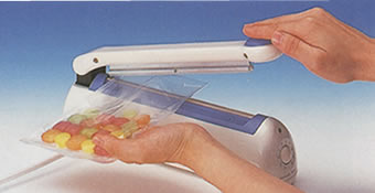 | 店頭での個包装や工場内で各種部品や食材などを少量ずつ包装 するのに最適です。コンパクトなボディで場所を取らず、機械の移動 も簡単です。 ![]() |