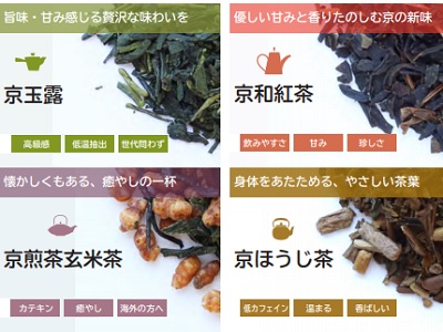 中身のお茶は「玉露茶・和紅茶・ほうじ茶・煎茶玄米茶」の4種類から選べます。